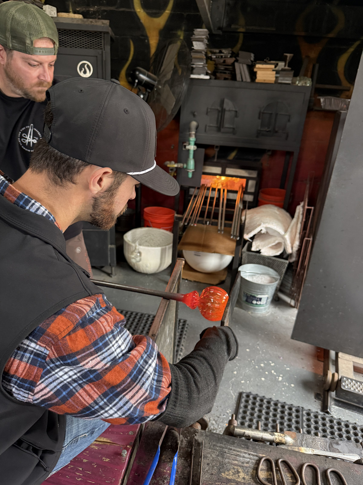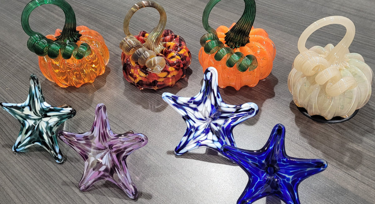 Next up was one of the day’s highlights — a glass-blowing class with local artist Jeffrey Auxer. Inside his colorful studio, we each had the chance to create our own one-of-a-kind glass treasures. Each of us had the opportunity to craft either a beautiful glass Pumpkin or a colorful Starfish, each featuring its own unique swirl of colors. Watching molten glass transform into vibrant, hand-blown art was both mesmerizing and unforgettable.
